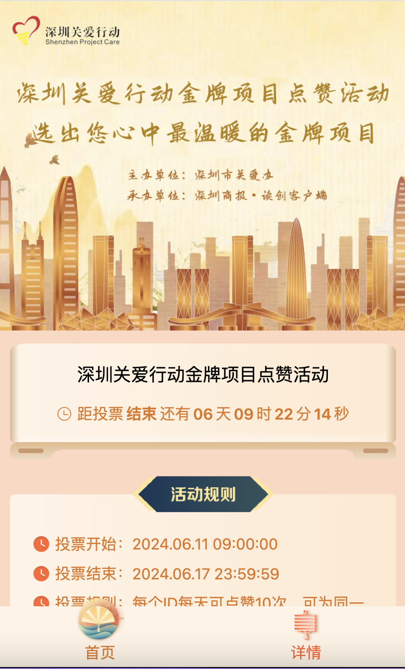 即日起至6月17日,市民可通過掃描活動二維碼進入點贊界面,為自己心目中最溫暖的金牌項目點贊。此次點贊活動不僅是對這些優秀項目的肯定,更是對深圳關愛行動的持續支持與鼓勵。