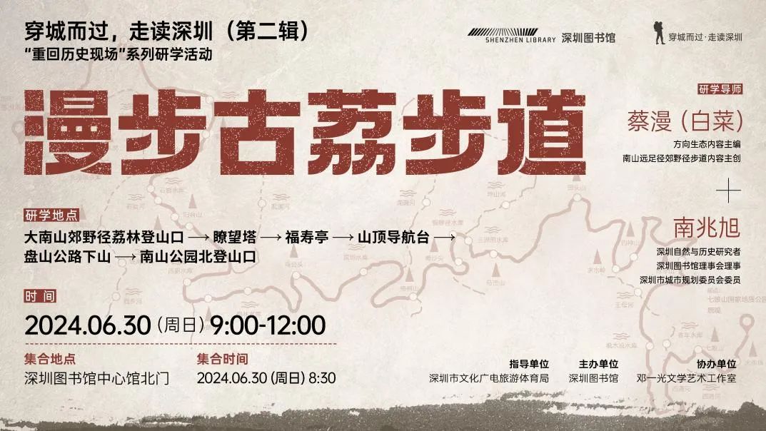 活動簡介:嶺南四時春,入夏荔枝紅。在嶺南荔枝成熟的最好時節,深圳圖書館舉辦“穿城而過,走讀深圳”(第二輯)“重回歷史現場”系列研學活動,邀請深圳自然與歷史研究者南兆旭、方向生態內容主編蔡漫,帶領市民讀者一同漫步古荔步道,探究深圳種植荔枝的緣起,了解各式荔枝的品類,品讀嶺南荔枝文化。