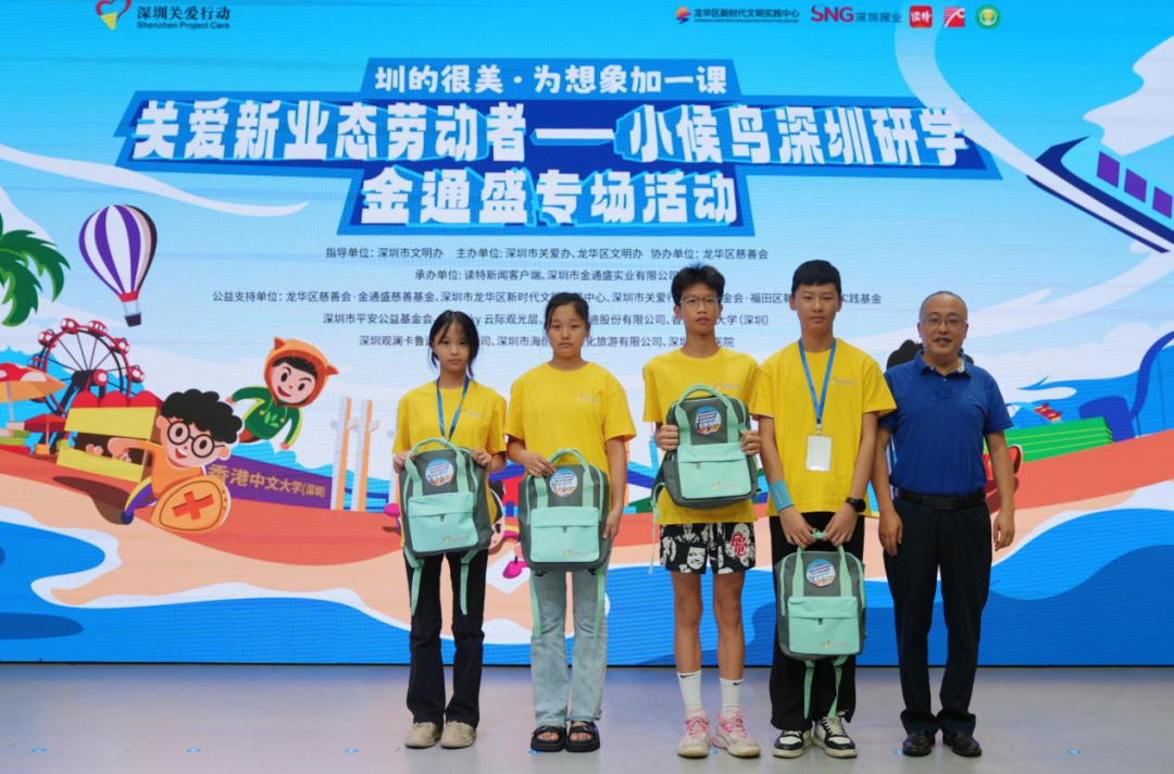 據悉,“小候鳥”深圳研學活動是一項持續性的公益活動,關注新業態勞動者因外出務工而無法照顧孩子的問題。自2023年7月首屆“關愛新業態勞動者——小候鳥研學”活動啟動以來,市關愛辦先后攜手多方力量,開展多次專場活動。本次金通盛專場,孩子們將從這里啟航,開啟為期四天的深圳研學之旅。