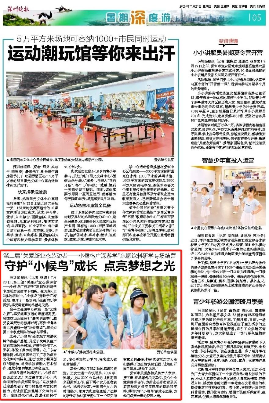 在深入調研與總結去年經驗的基礎上,市關愛辦聯合東鵬飲料集團有限公司、金通盛實業有限公司、深圳市共進電子股份有限公司等愛心企業以及大浪街道商會、贏家時尚公益基金會等公益機構,共同策劃了五場豐富多彩的游學活動。活動參與人數大增,覆蓋地域也更加廣泛,甘肅、陜西、河南……全國近20個省、自治區的兩百多名“小候鳥”跨越千山萬水,在深圳這座繁華都市中,搭建起了一座通往知識與夢想的橋梁。