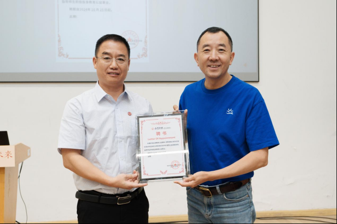 在教師個人閱讀心得分享環節,初中部主任段占忠代表全體老師用文字走近陳行甲,他講述了陳行甲發起的“聯愛”“知更鳥計劃”“傳薪計劃”等多個公益項目,贊嘆陳老師是教育的同行者,更是先進教育理念的領跑者,因此特聘陳行甲老師為寶安為明學校“教育公益領航導師”。