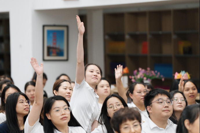分享會上,學校語文組7位青年教師代表朗誦了《在峽灣的轉彎處》中的精彩片段。會上還設置了書籍內容搶答環節,中小學部老師分組進行PK。