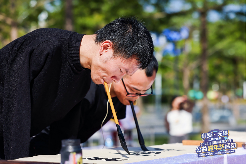 豐富的活動內容吸引大批市民參加。在互動體驗區(qū),市民排隊體驗助殘主題游戲,通過游戲了解殘疾人在生活中可能會遇到的困難與不便;在愛心義賣區(qū),市民品嘗展位工作人員精心制作的點心、咖啡、奶茶;義剪展位的殘疾人理發(fā)師為市民免費理發(fā);義診展位的口腔檢查、視力檢測、健康咨詢等免費體驗項目也很受市民歡迎。琳瑯滿目、做工精美的非遺藝術品和手工藝品吸引市民駐足參觀,口書達人何子龍、劉能精彩的書法在現(xiàn)場“圈粉”不少,曾亮相今年巴黎殘奧會的魚皮畫讓市民驚嘆不已。科技助殘是本次嘉年華活動的亮點之一,市民現(xiàn)場體驗高科技輔具,深圳作為科技有限公司、深圳市星火傳媒科技有限公司、深圳純聽科技有限公司、深圳比心智能有限公司等企業(yè)現(xiàn)場路演,展現(xiàn)科技助殘研發(fā)成果?;顒蝇F(xiàn)場還設有普法宣傳展位,展位為殘疾人提供法律咨詢。