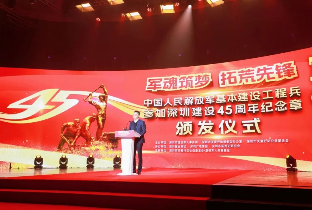 12月28日下午,以“軍魂筑夢 拓荒先鋒”為主題,“中國人民解放軍基本建設工程兵參加深圳建設45周年紀念章”頒發儀式在深圳廣電集團800演播廳舉行。近300名原基建工程兵老兵、退役軍人代表與來自社會各界的嘉賓代表歡聚一堂。