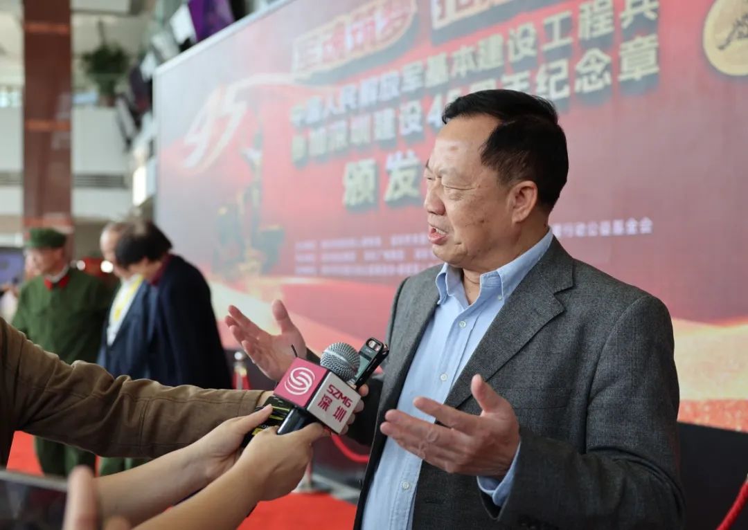 市退役軍人事務局黨組書記、局長商澎濤在致辭中表示,45年前,2萬基建工程兵肩負國家重托,拓荒邊陲小鎮,建設深圳經濟特區。他們把軍魂融入這座城市的基因血脈,成為“敢闖敢試、敢為人先、埋頭苦干”特區精神的重要組成部分,激勵著后來的建設者們不斷前行。紀念章的頒發正是對他們無畏勇氣的崇高敬意,對其無私奉獻的深情銘記,對其無悔付出的真摯感恩。它承載著深圳人民對他們的感激,也彰顯著這座城市對2萬基建工程兵功績的認可。他激勵老兵們繼續傳承和發揚基建工程兵的優良傳統,發揮余熱,老有所為,以基建工程兵群體中涌現的全國模范退役軍人劉坤德、廣東最美退役軍人黃干達、深圳最美退役軍人周順斌、沈遠彪等先進典型為榜樣,以更大熱情弘揚“拓荒牛”精神,為深圳的建設發展再出發、再奮斗、再添彩。