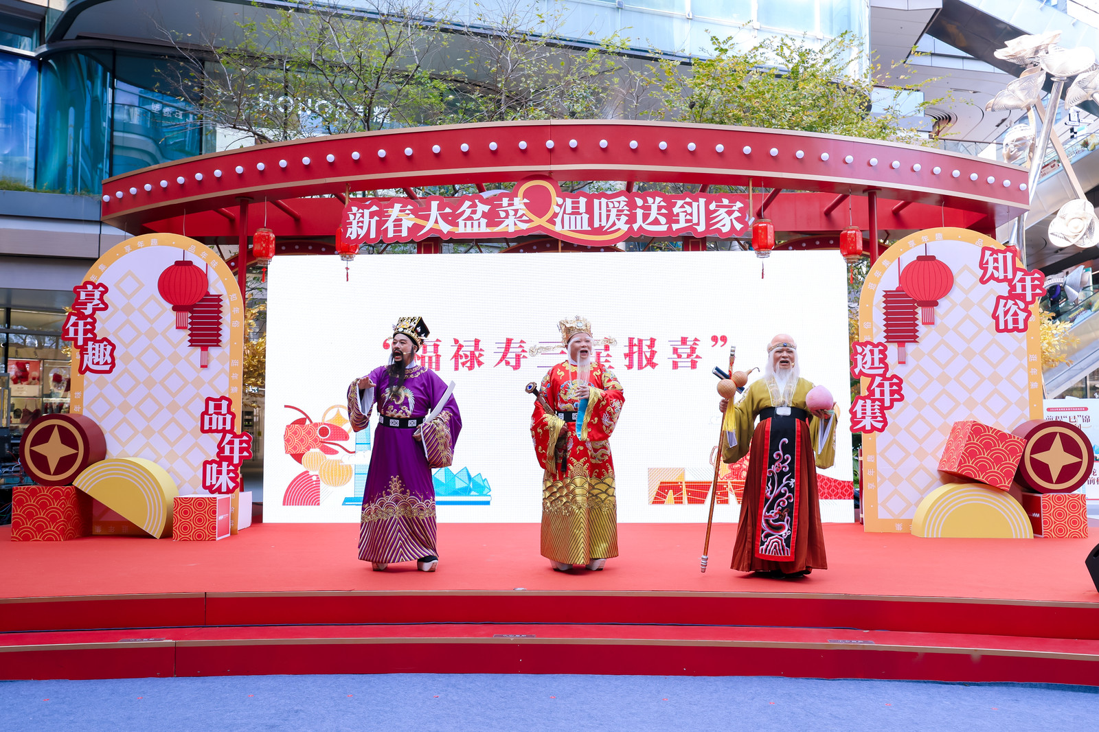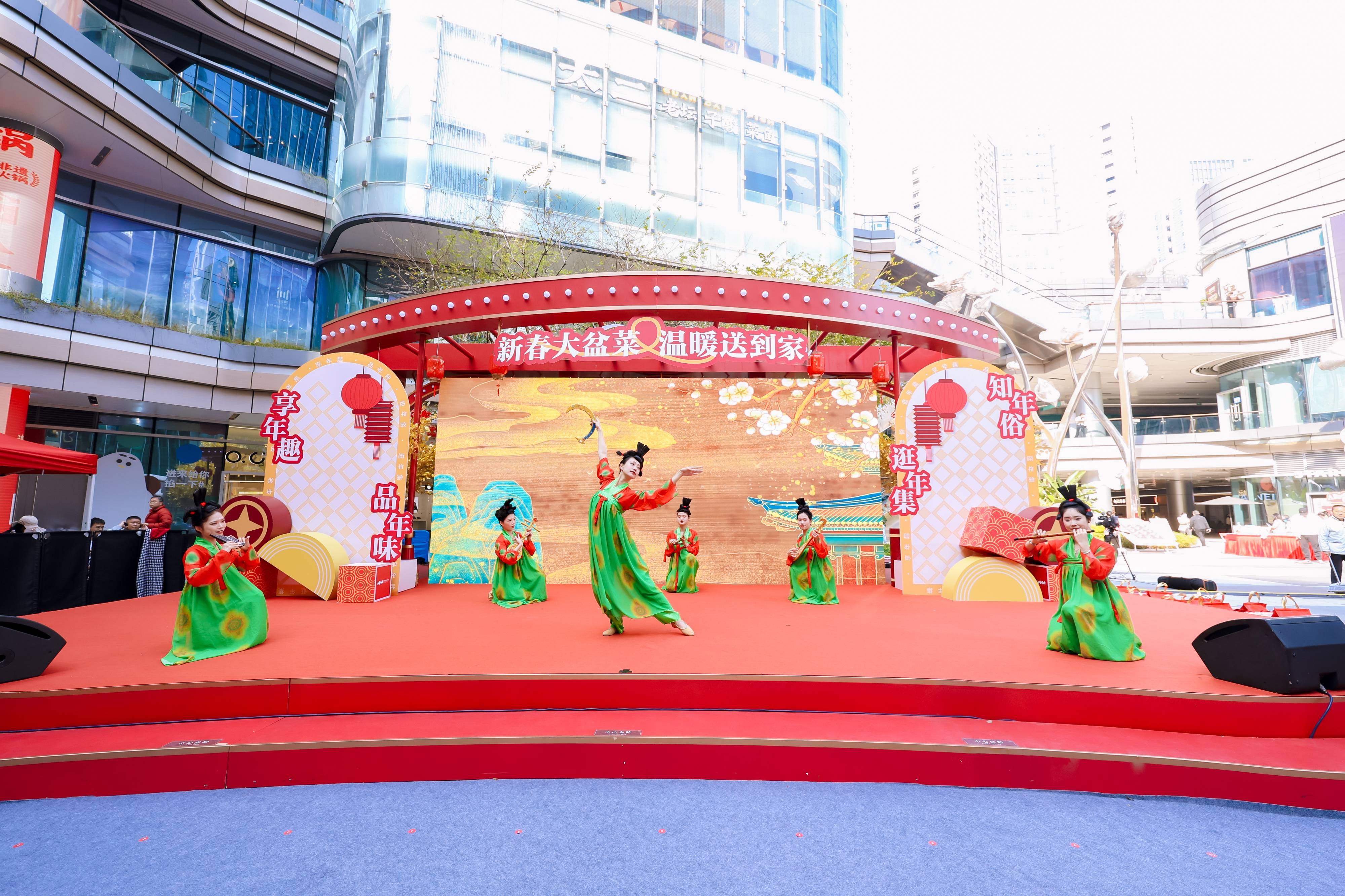在“新春大盆菜 溫暖送到家”活動(dòng)現(xiàn)場(chǎng),龐大的金色發(fā)財(cái)樹新春裝置成為了男女老少新年祈福打卡墻;舞蹈《唐宮夜宴》驚艷登場(chǎng),華服少女帶領(lǐng)市民穿越古風(fēng)新春;“福祿壽”三星霸氣來襲,不少市民紛紛合影為新年添福……