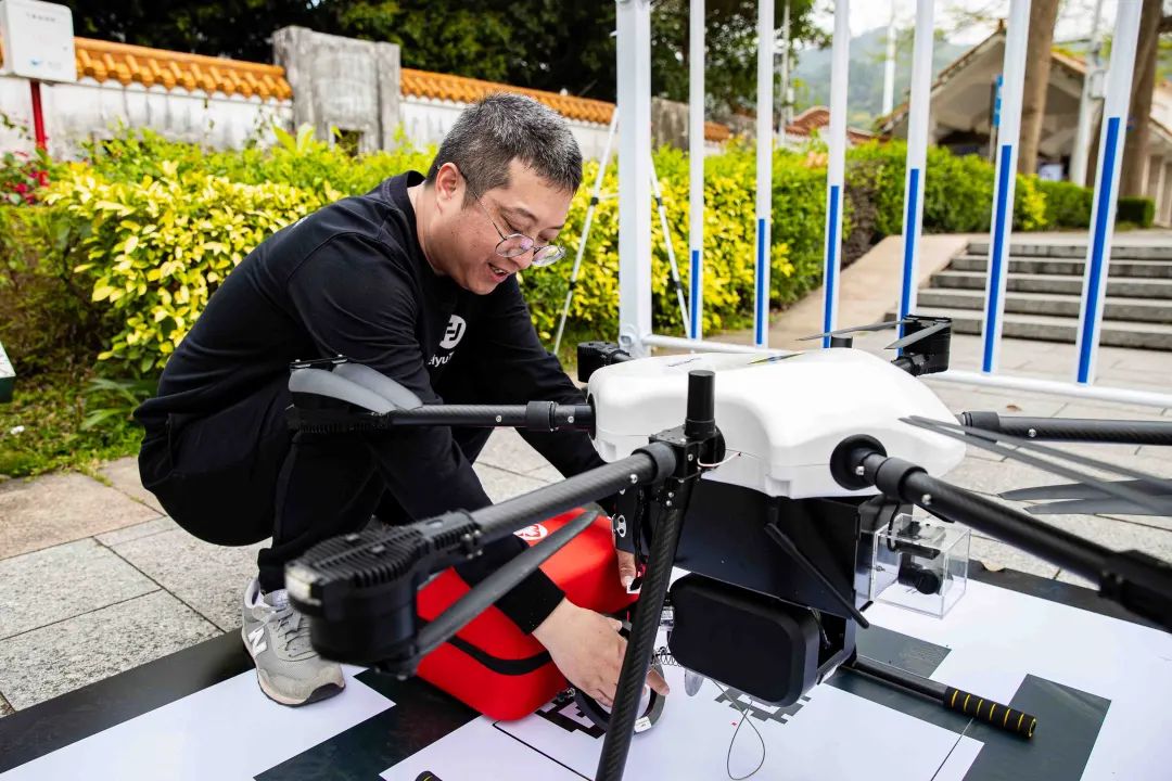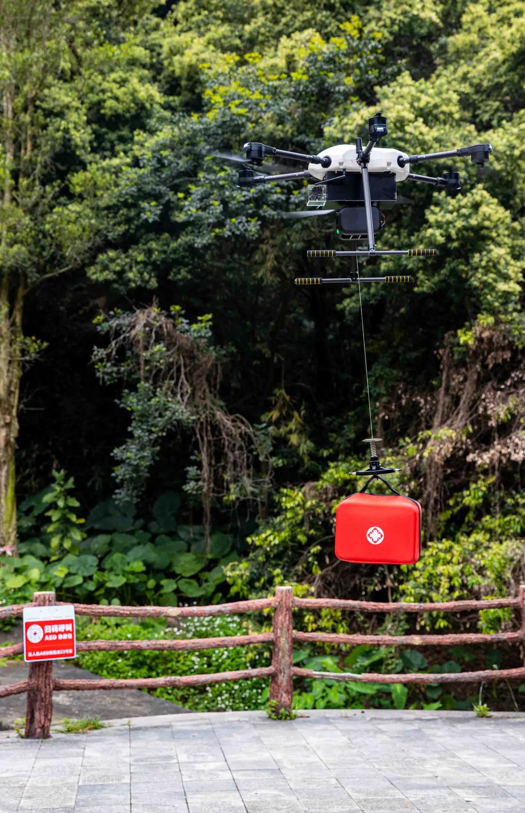 該項(xiàng)目率先在塘朗山郊野公園、鳳凰山森林公園、石巖濕地公園、羅田森林公園和福海河公園設(shè)立了5個(gè)無(wú)人機(jī) AED 配送站試點(diǎn)。每個(gè)公園規(guī)劃了30個(gè)無(wú)人機(jī)降落點(diǎn)位,構(gòu)建起了城市智能化空中救護(hù)平臺(tái)。一旦發(fā)生緊急狀況,市民掃描附近急救點(diǎn)的“企鵝急救”二維碼,即可精準(zhǔn)定位、一鍵呼叫裝載著AED和急救包的無(wú)人機(jī),通過(guò)預(yù)設(shè)最快航線,迅速起飛并精準(zhǔn)抵達(dá)事發(fā)地,為患者爭(zhēng)取寶貴的急救時(shí)間,成功打通了急救的立體化空中通道。