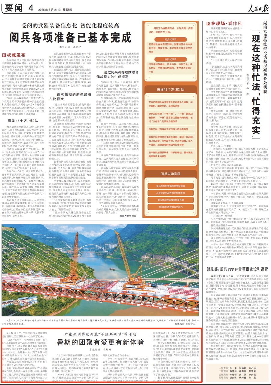 8月21日,《人民日報》第04版刊出《廣東深圳持續開展“小候鳥研學”等活動,暑期的團聚有愛更有新體驗》,介紹深圳市關愛辦連續3年開展的“關愛新業態勞動者——小候鳥研學”活動。全文如下: