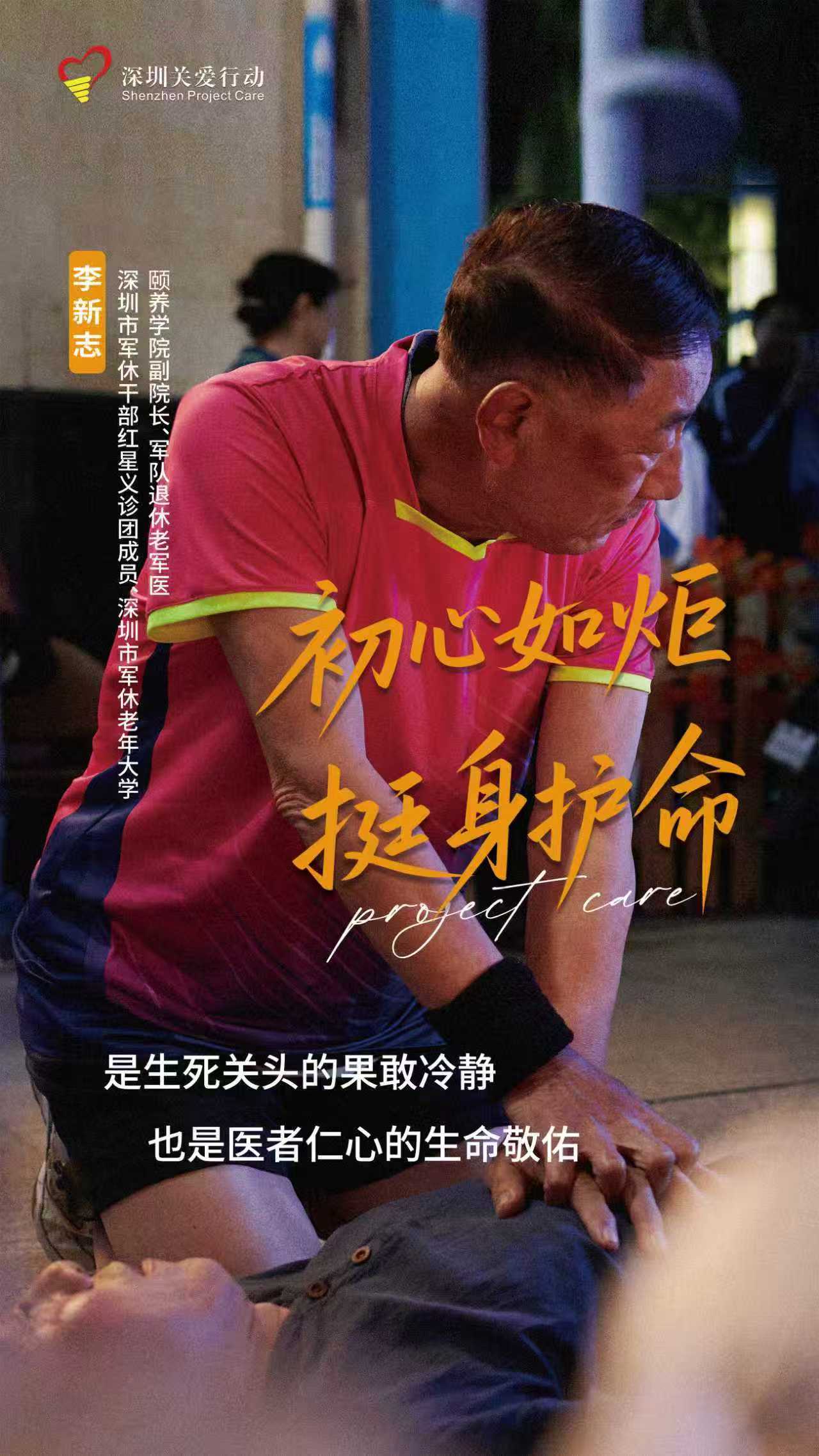 李新志是深圳市軍休干部紅星義診團成員、退休老軍醫。他,用行動詮釋著“初心如炬,醫者仁心”的千鈞分量,在急救的生死關頭他果敢冷靜,曾將心肺復蘇跪地按壓胸膛比喻為和閻王爺掰手腕,在與死神的時間博弈里,不僅需要技術,更需要撐住、撐住、再撐住的堅持,此外,他還常為社區居民開展免費義診、普及健康知識、提供健康咨詢等志愿服務,他以凡人之軀,行不凡之責。
