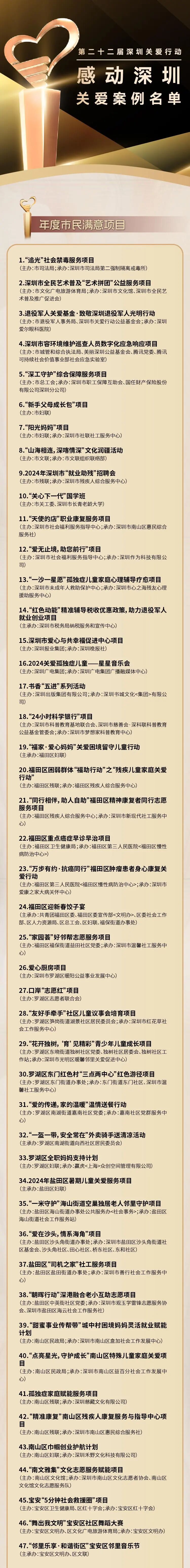 第二十二屆深圳關愛行動“感動深圳”關愛案例名單已揭曉
