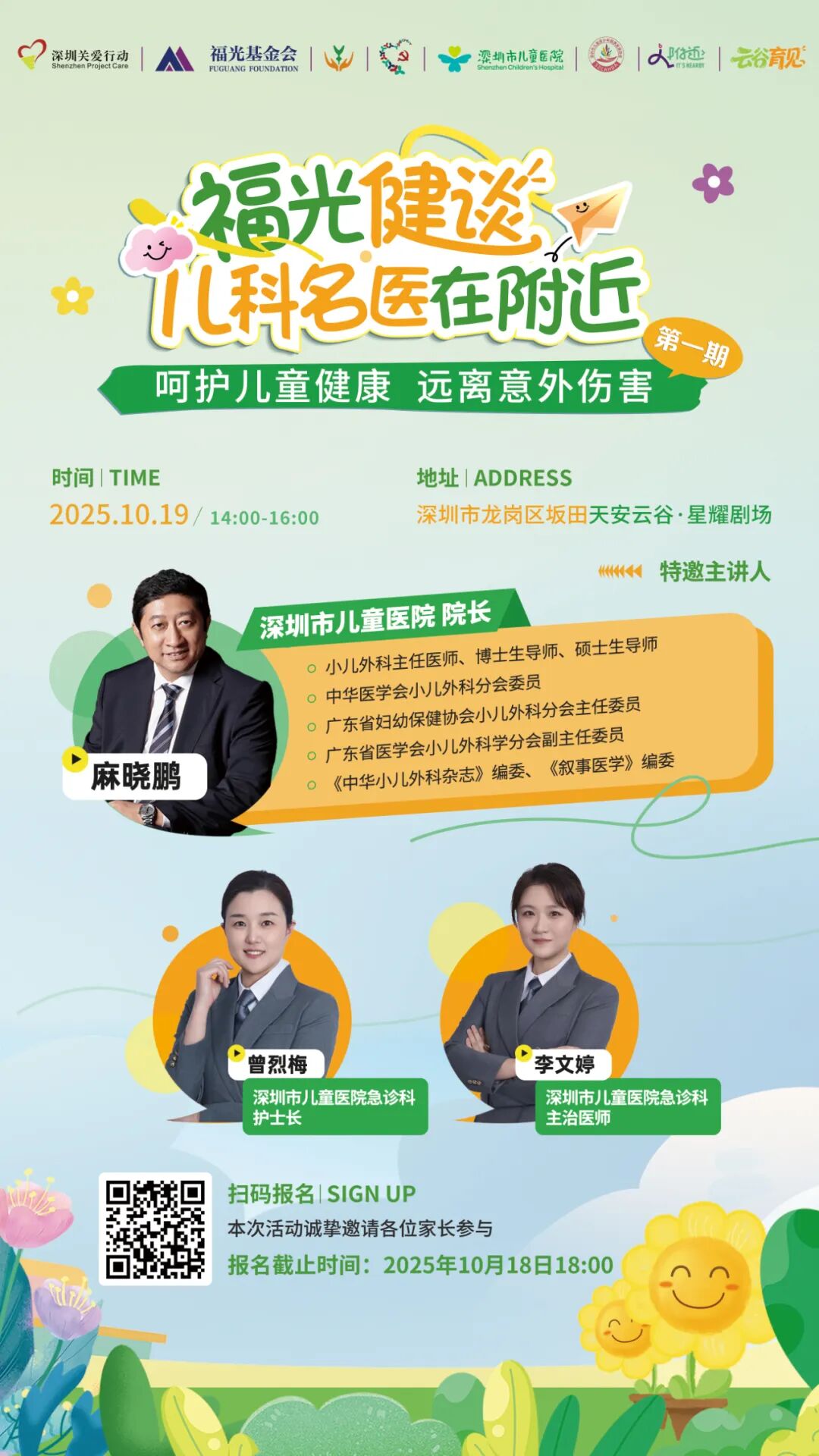 為回應這份愛,福光基金會攜手深圳市關愛行動組委會辦公室、深圳市兒童醫院,在天安云谷啟動「福光健談?兒科名醫在附近」兒童健康系列公益講座。