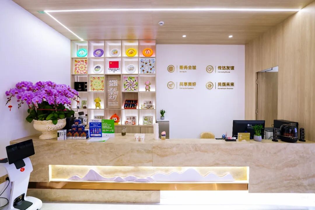步入香蜜湖國際友好服務中心,“APEC 2026 共赴深圳之約”的展示架首先映入眼簾,無聲傳遞著這座城市對國際盛會的熱切期盼。這里不僅是服務站點,更是情感樞紐——多語種問候墻迎候來賓,智能翻譯機隨時待命,AI數字人“福鷺”用清亮的語音對話交流,為外籍朋友提供法律、稅務、人才政策等一站式咨詢,讓“來得了、留得下、玩得好”從承諾變成可觸可感的日常。