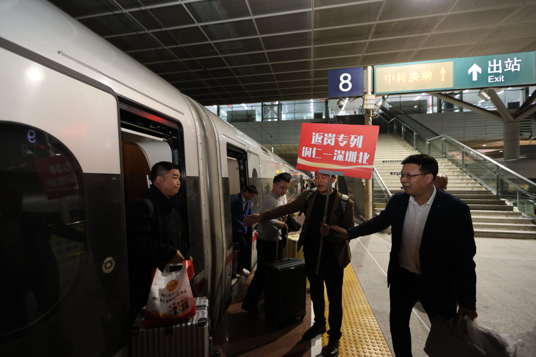 2月24日22時43分,G2137次列車穩穩駛入深圳北站。車廂門打開,來自貴州銅仁的289名工友,帶著家人的囑托和對新年的期待,踏上深圳這片熱土,開啟新的奮斗征程。